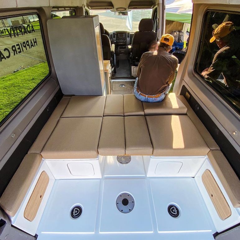 Se espera que el sistema modular Adaptive se venda al por menor por menos de $ 10k, que incluye una rejilla de piso, tres bancos y cajas de arco de dos ruedas, lo que lo convierte en un método muy asequible para convertir una camioneta. Happier Camper también ofrecerá un paquete de lujo que incluye inodoro, cocina, refrigerador, nevera y arreglos para dormir y comer para cuatro, y también han mencionado que se diversificarán en kits para otros tipos de camionetas.